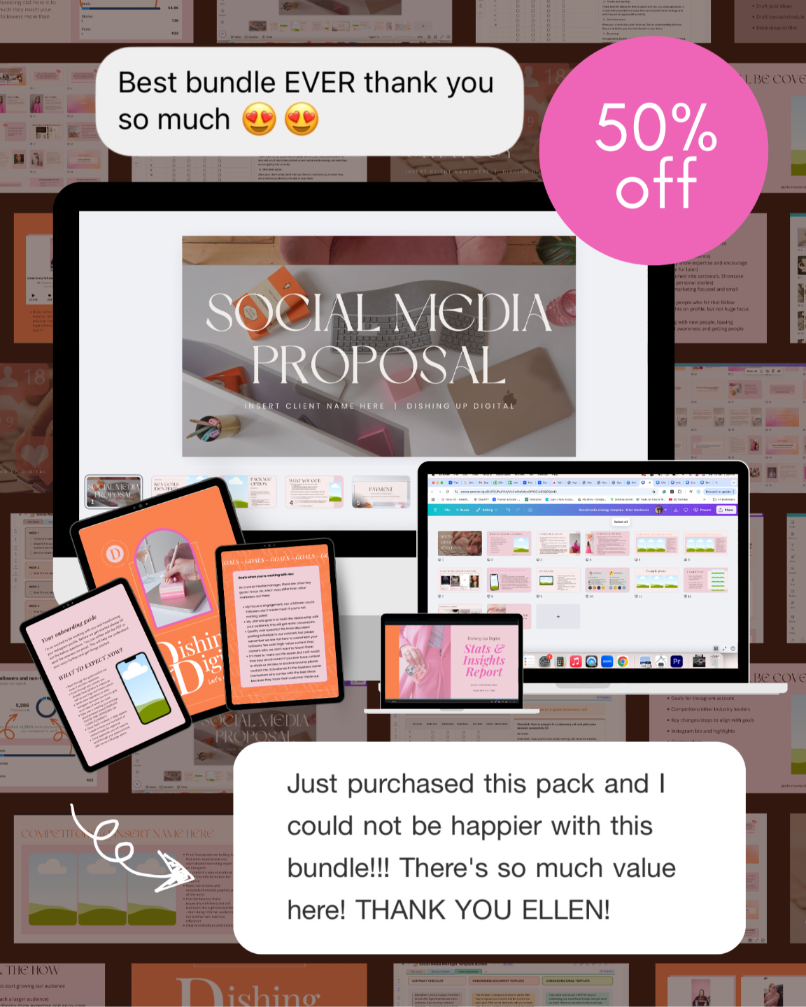 - Insights/Stats report template (with tips on how to showcase your work better to clients)
